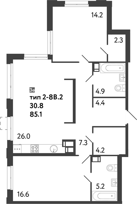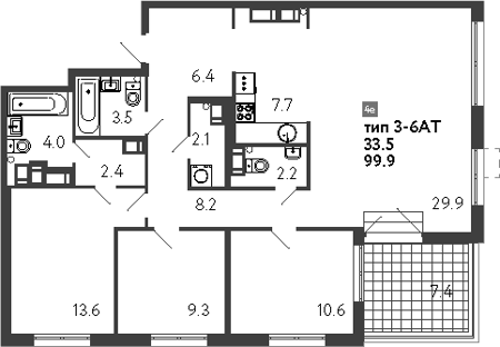 3Е-комнатные