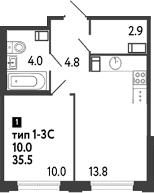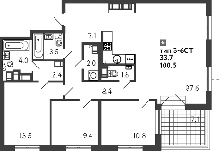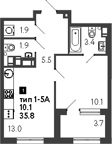 Площадь от 35.5 м2