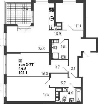 Площадь от 58.3 м2