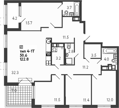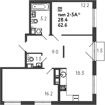 Площадь от 51.5 м2