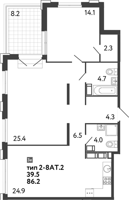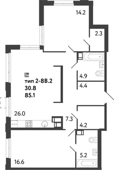 Площадь от 83.8 м2