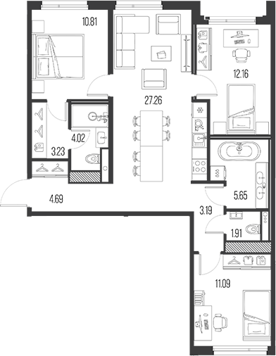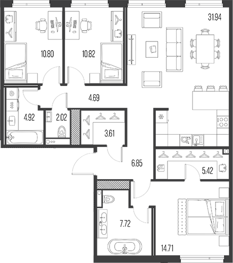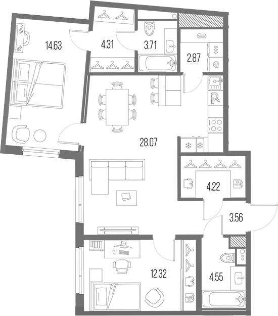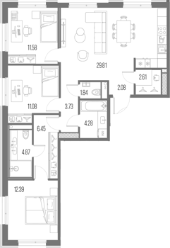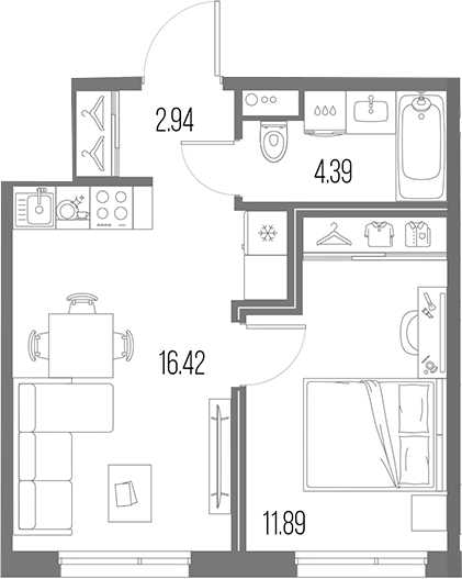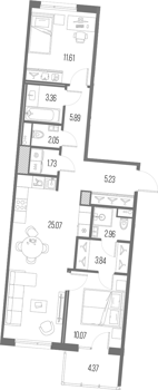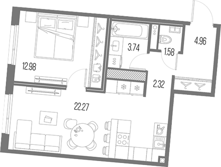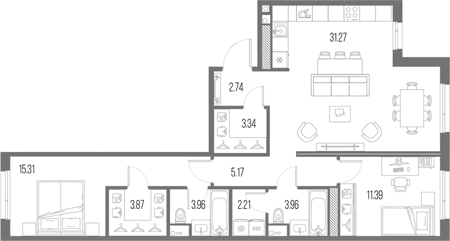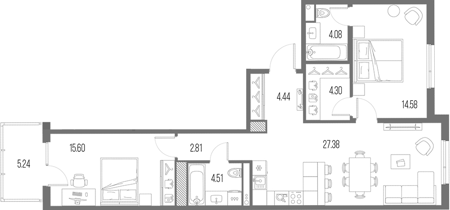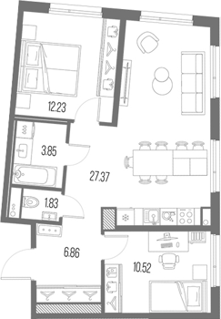 Площадь от 27.83 м2