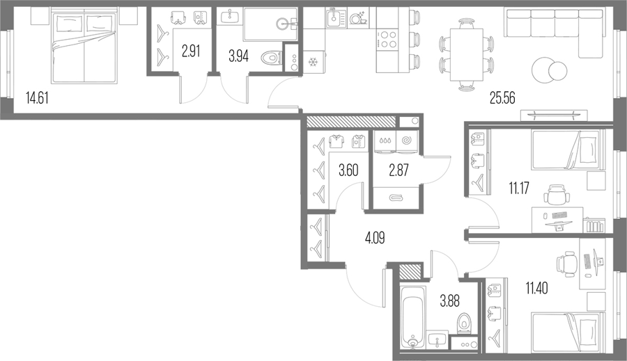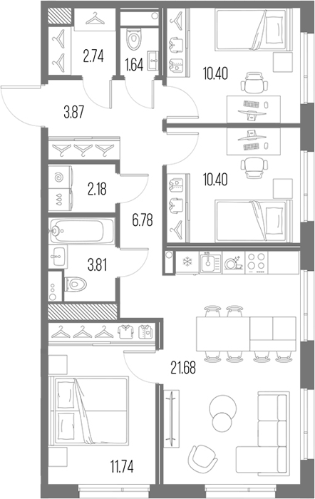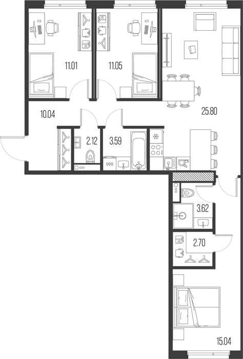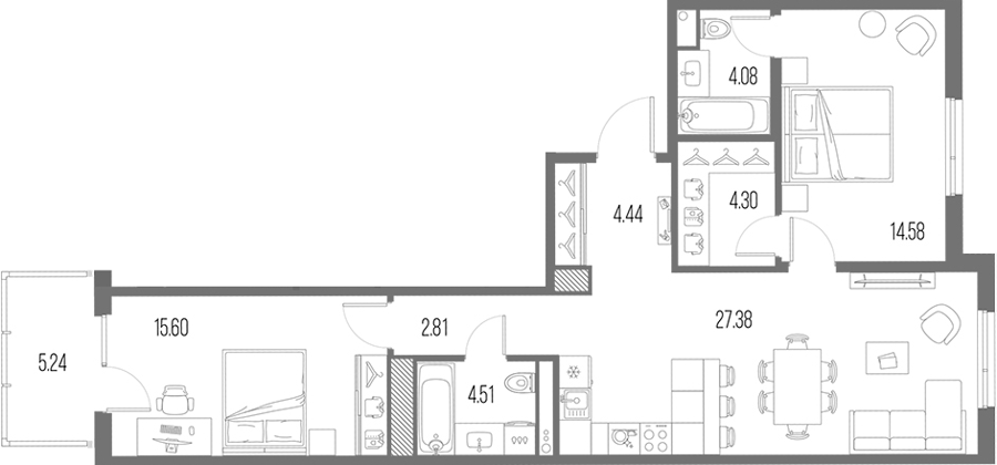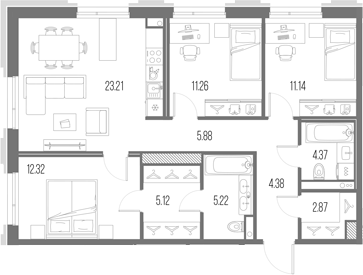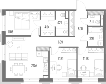 3Е-комнатные