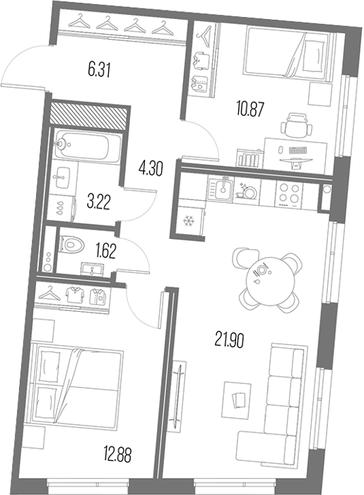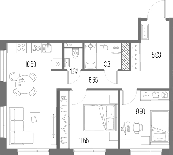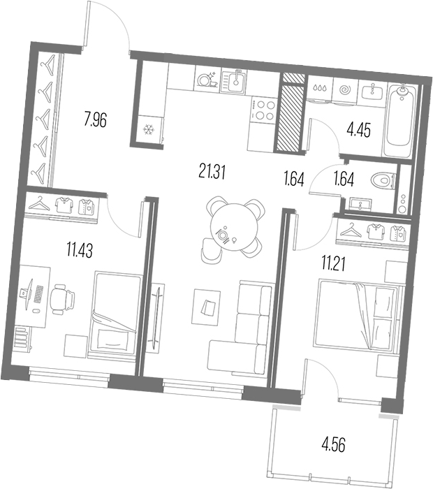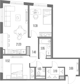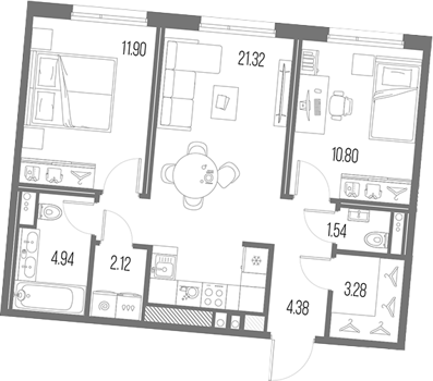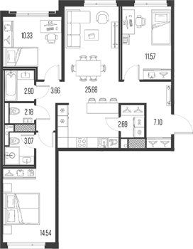 Площадь от 54.14 м2
