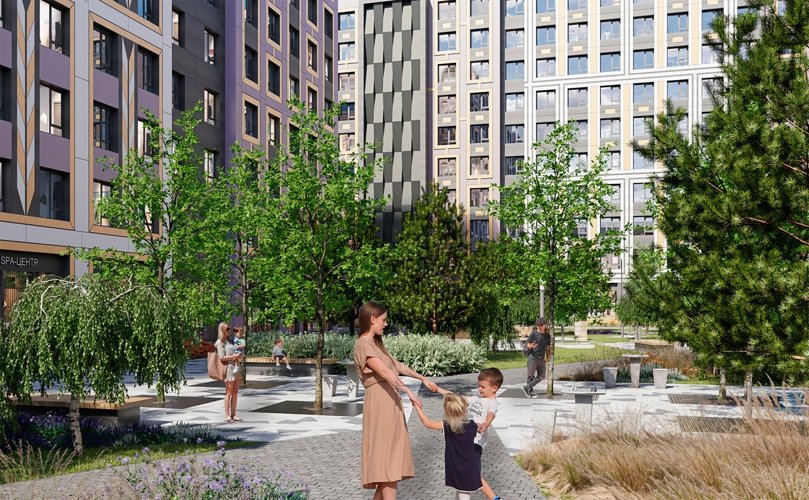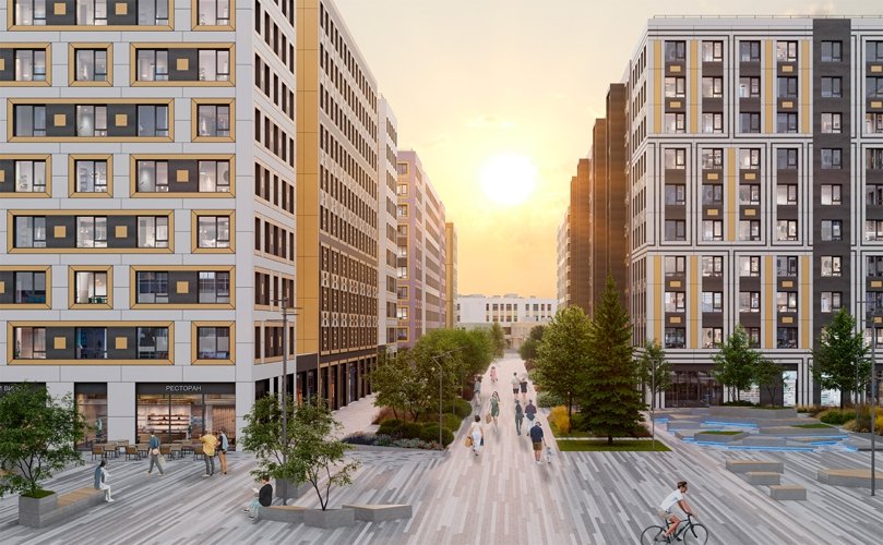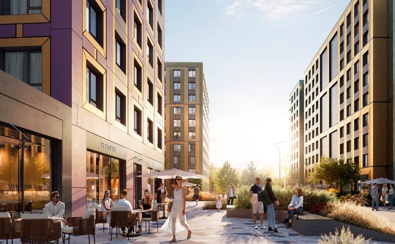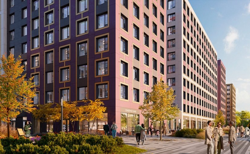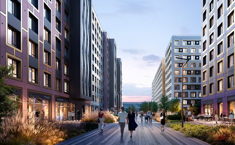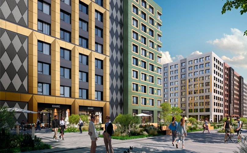 Живое городское пространство с магазинами, кафе и сервисами.