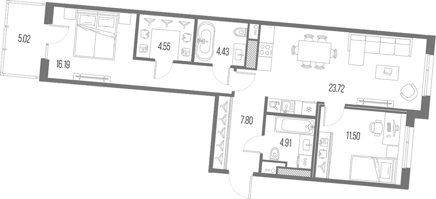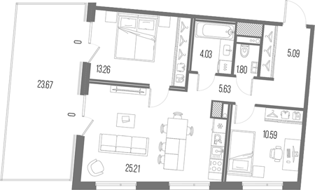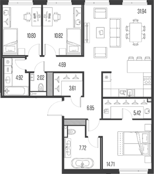 Площадь от 75.24 м2