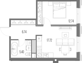 Площадь от 35.64 м2